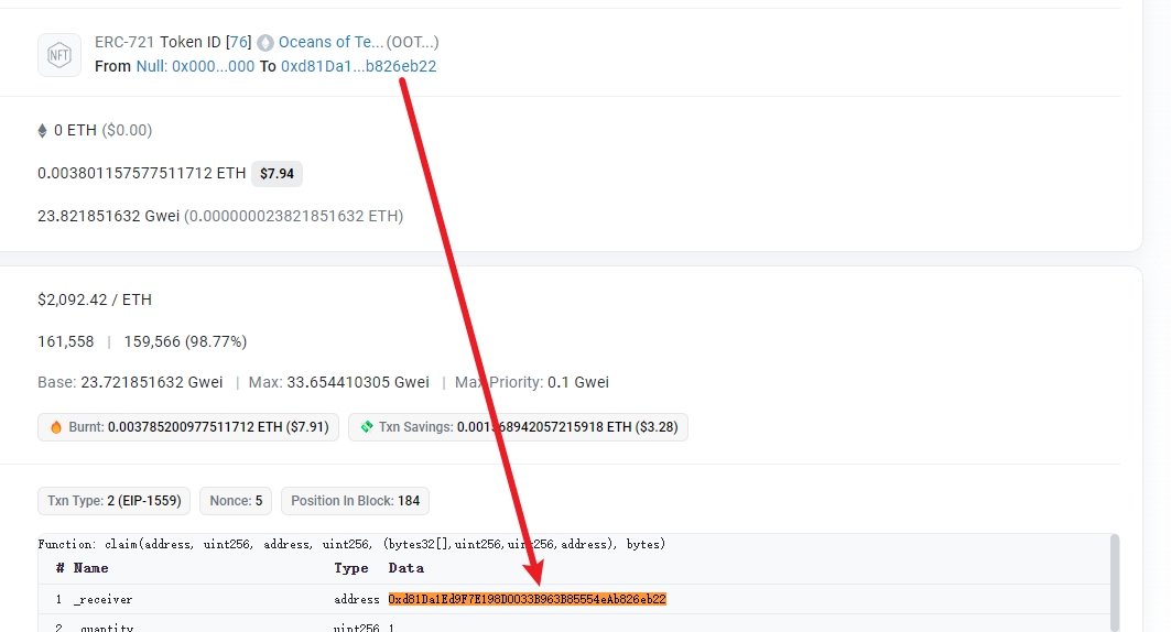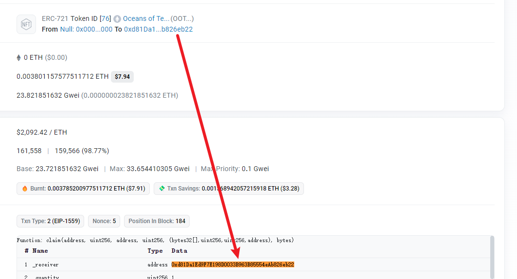 答案是有的,首先要这条tx已经confirm,然后你找到nft从0地址真实转移到了xxx地址,然后你直接去找xxx地址在不在参数里,用浏览器自带的搜索,一下子就会给你高亮标记出来,然后把这个参数替换为&就完事了。