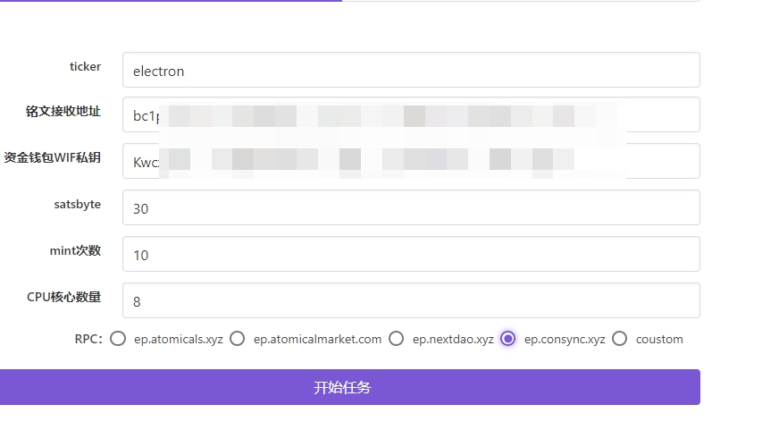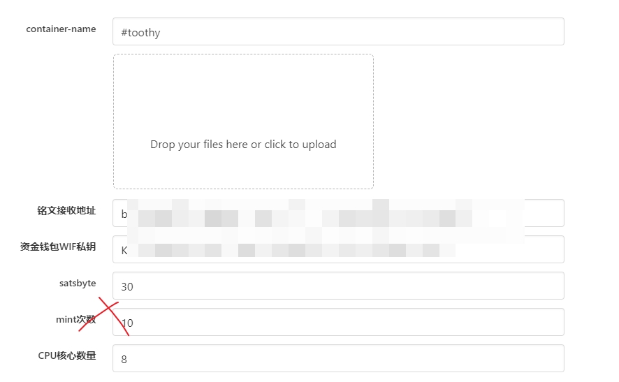 资金钱包wif私钥:付上链fee的钱包的私钥,注意不要用有铭文的钱包,系统未做隔离,会烧掉。