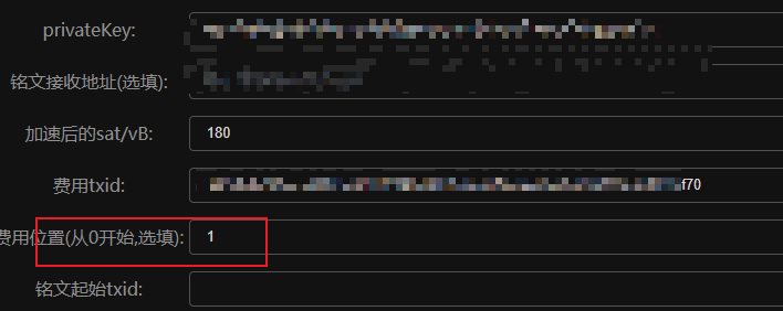 注意:如果你的utxo里面含有多个输出,并且你要用的输出不是第一个,那么你需要指定使用输出的位置。比如下图就是第1位(从0位开始计算)