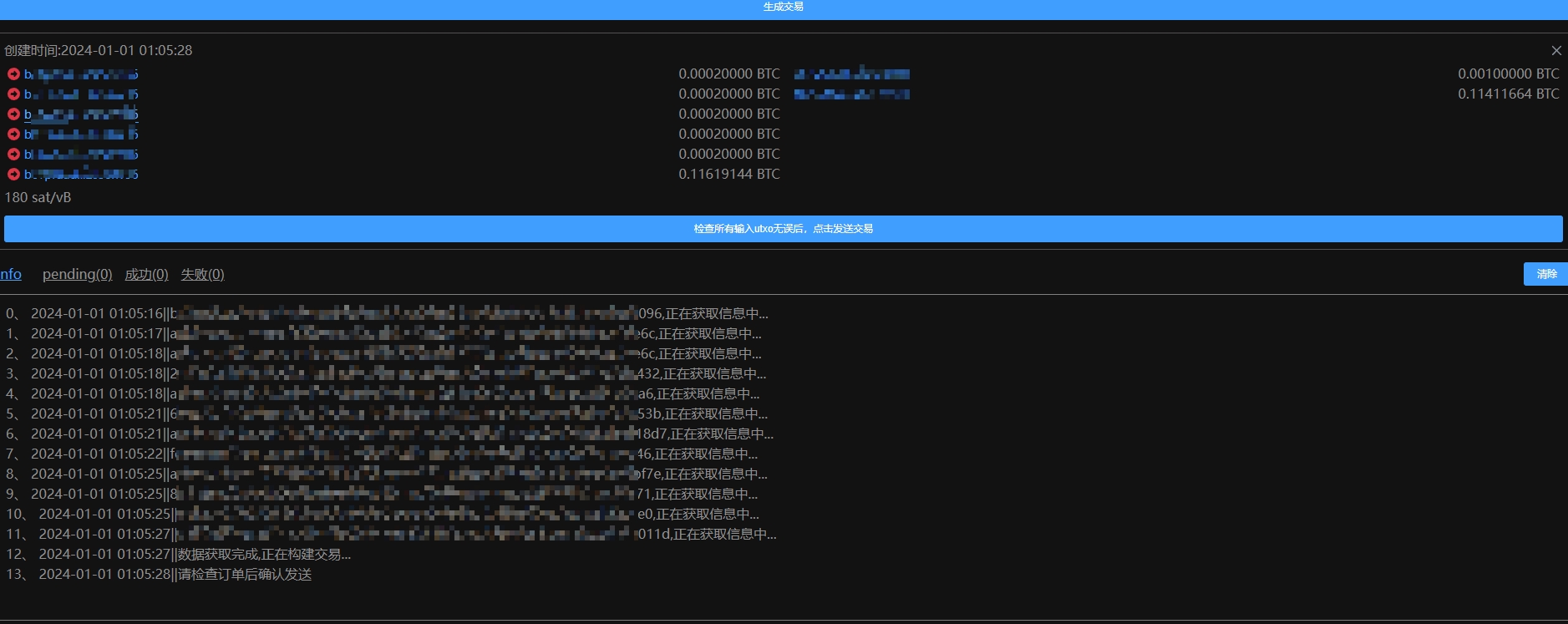 点击生成交易,系统会扫描这条utxo链路上面所有的后裔交易