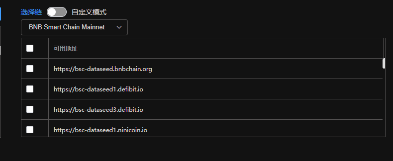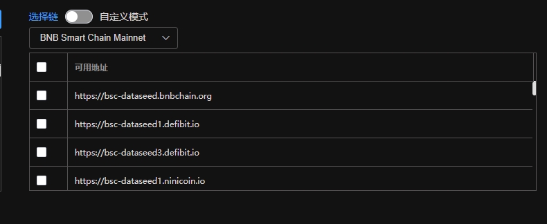 请选勾选一个rpc,测试是否可用。 (慎用)高级操作:你可以勾选多个rpc,这样系统会把任务随机分配给不同的rpc,这样可以避免触发某些公共rpc的限频。