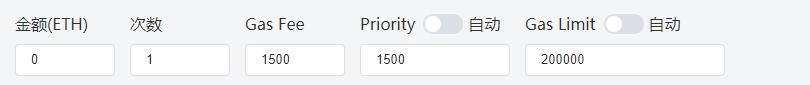 fee、priority和limit这就不多说,limit非0块一般都用自动1.3倍。如果这个合约没有mint过,打0块或者时间戳第一时间冲,这种时候需要手动设置limit,因为系统第一时间拿不到的,为什么会拿不到和geth的limit算法有关,这里不展开讲。