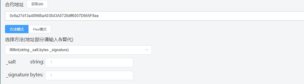 输入合约地址,点击获取abi,然后下拉选择方法,填入参数。