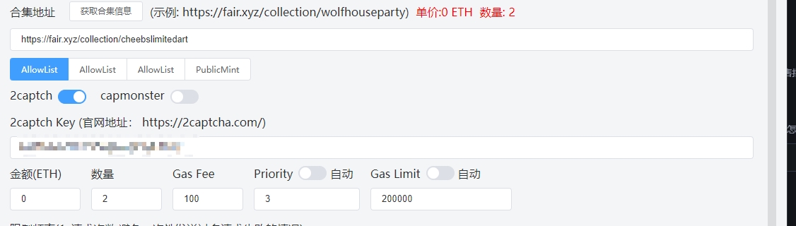 2cap和capmaster都需要去对应网站充值,充值10u可以用很久,然后把里面的key复制到bot即可。
