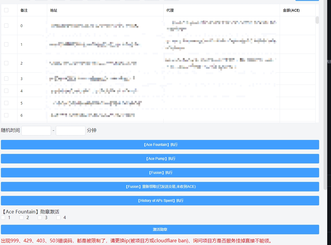 首先:ace项目需要代理ip,项目方封ip很厉害的。