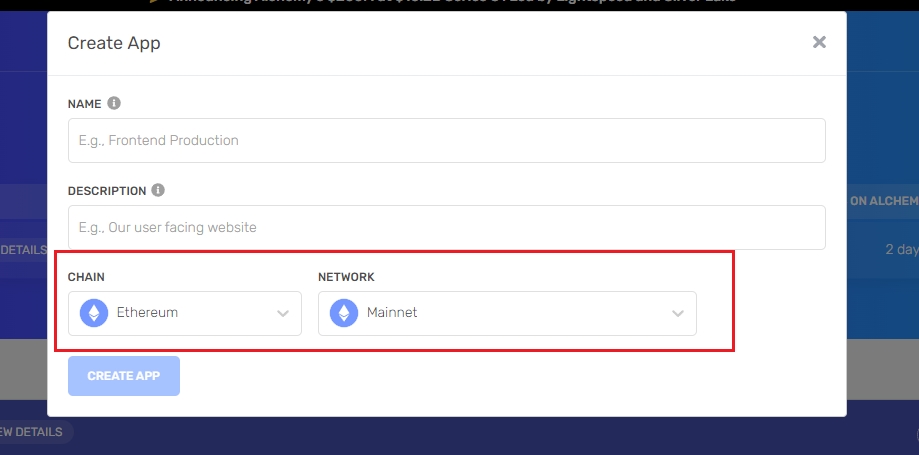 名字随便填一个,描述不用管,选择eth主网,然后点击创建