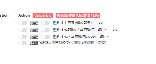 如果单合集bid 档位数量 > 1,则提醒和撤bid不生效!!!