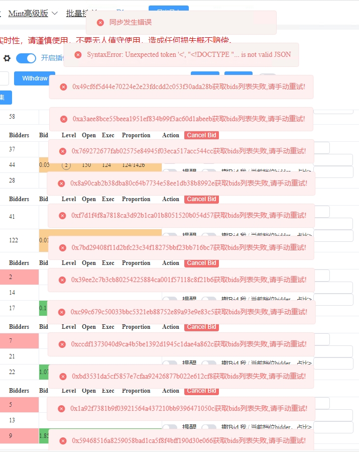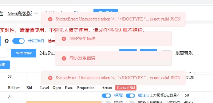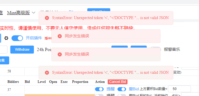 如果是短期触发图二的错误码,就是你短期挂撤太多被限频了,那么直接刷新页面,等5分钟后开启任务就行。