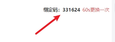 输入绑定码,注意绑定码会每一分钟轮换一次。