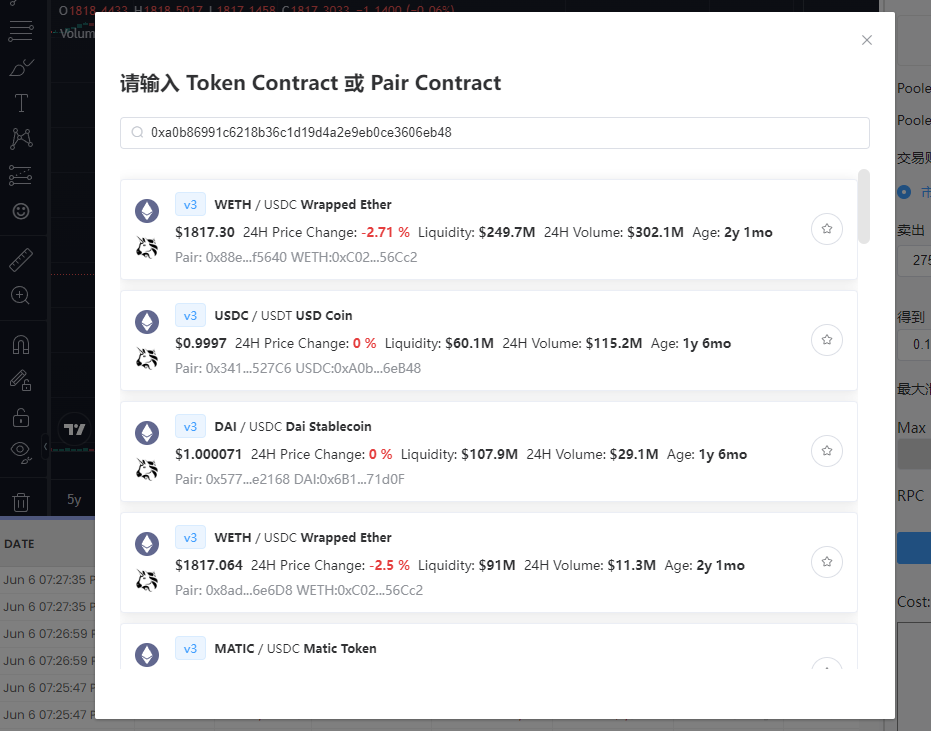 点击搜索框,输入合约地址或者池子地址