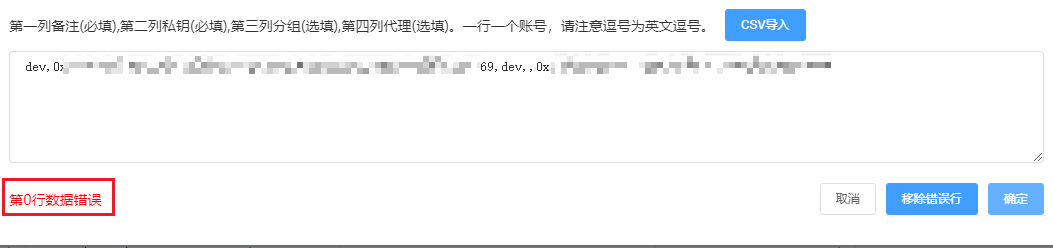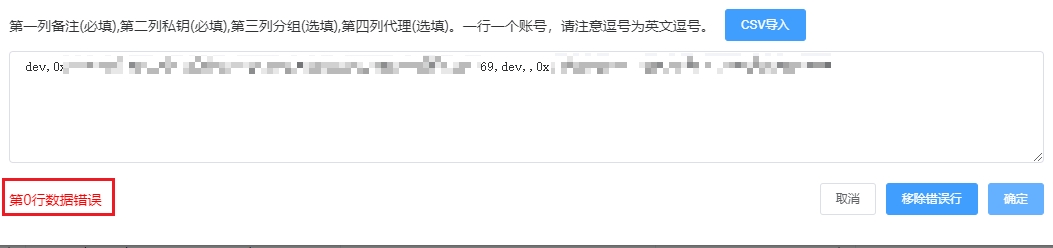 如果你不知道怎么整理编辑csv文件,你可以在网页先创建几个钱包,然后导出,就可以得到标准的系统所需的csv文件了,里面列都是一一对应好的。